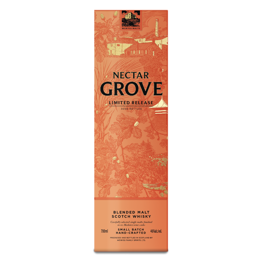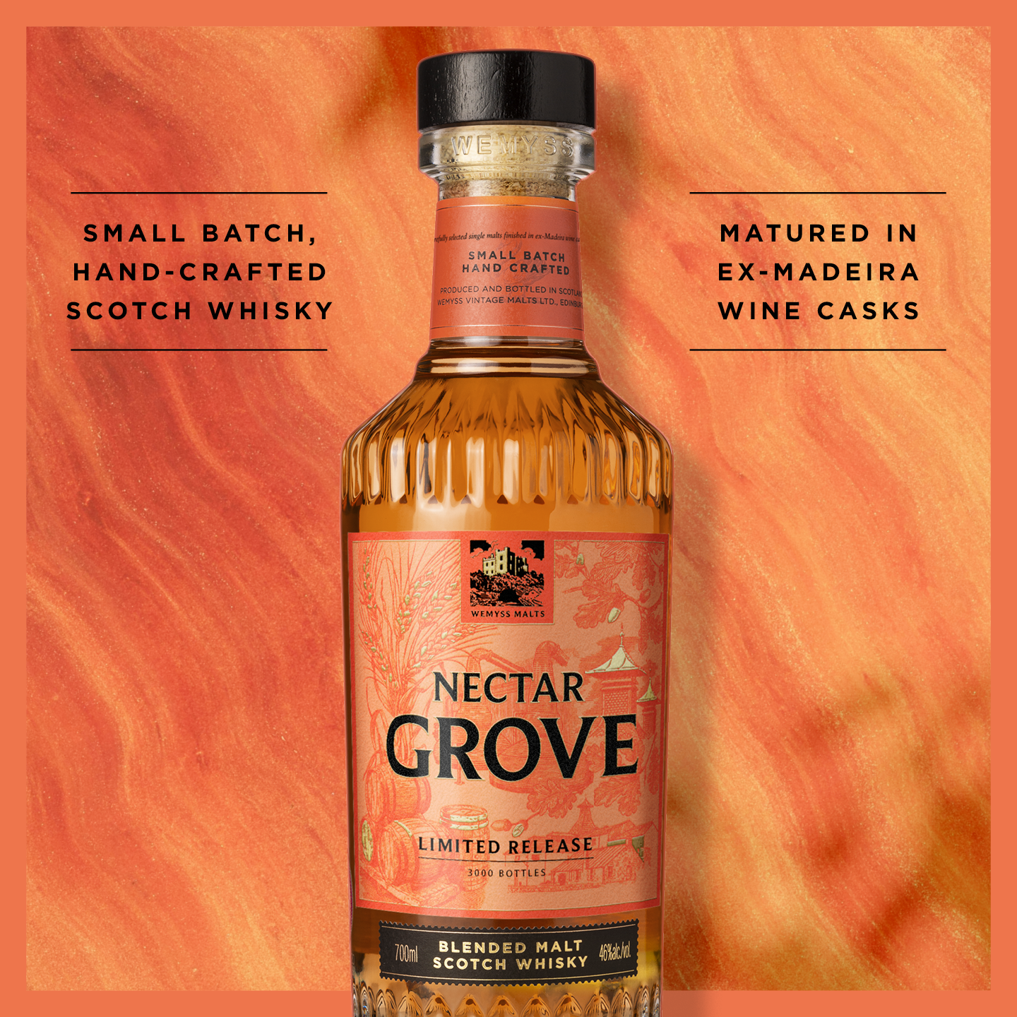 Nectar Grove is an exclusive Limited Edition small batch, hand-crafted Scotch whisky with a beautifully succulent character. A blend of fine single malts has been filled into hand-selected ex-Madeira wine casks to marry with the oak for a rich, warm finish.