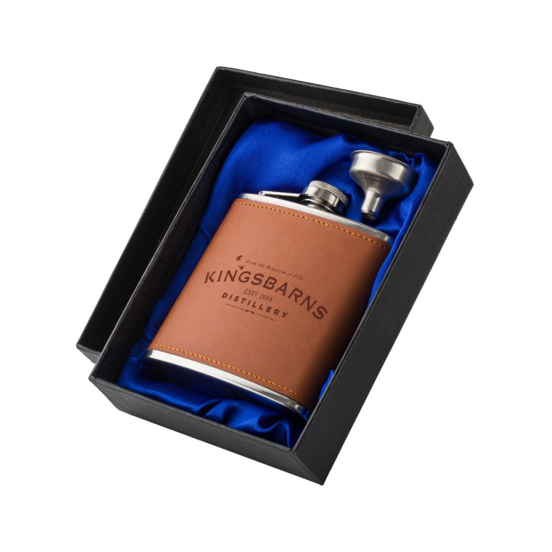 Take your favourite whisky anywhere in our 6 oz PU leather Kingsbarns hip flask in gift box, complete with funnel