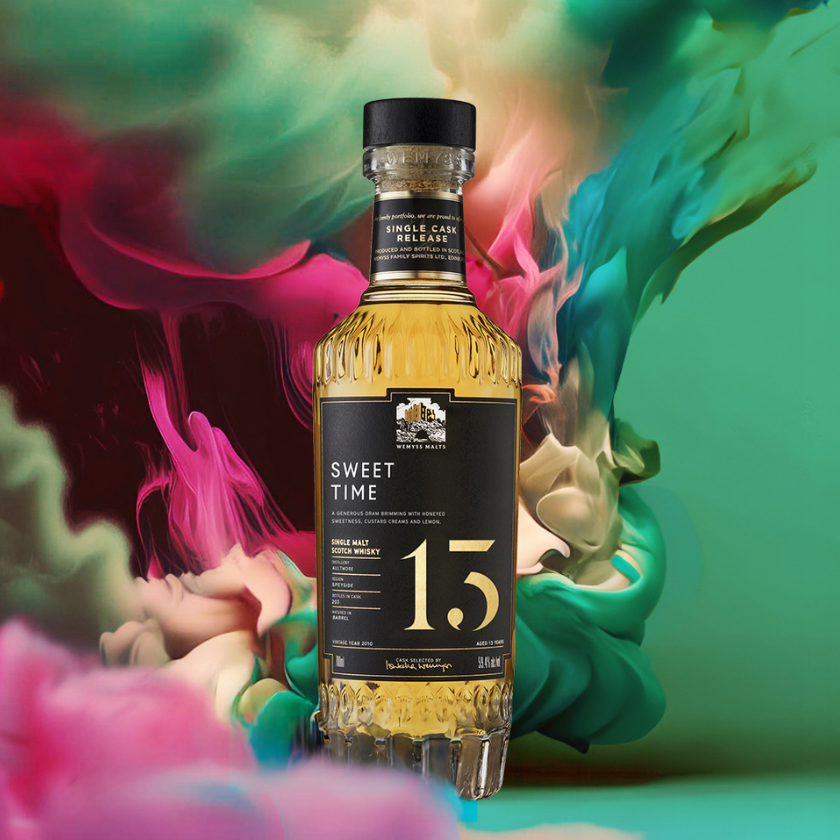 Welcome to the exclusive world of "Sweet Time," a 13 year-old single cask whisky meticulously curated by Isabella Wemyss, celebrating the essence of time and sweetness in every drop.