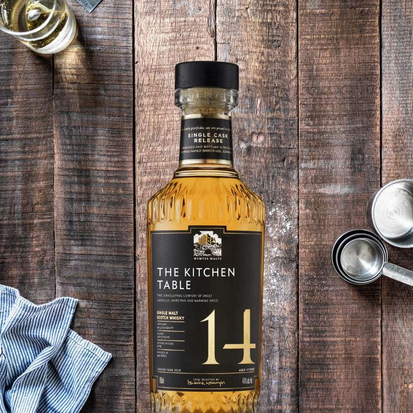 "My Kitchen Table bore the brunt of childhood baking: an indulgence of weekend pastries interwoven with messiness and chaos, but a fresh, warm Victoria Sponge with an icing sugar blanket would magically appear at the end. This dram is that homely, sweet, indulgent feeling."