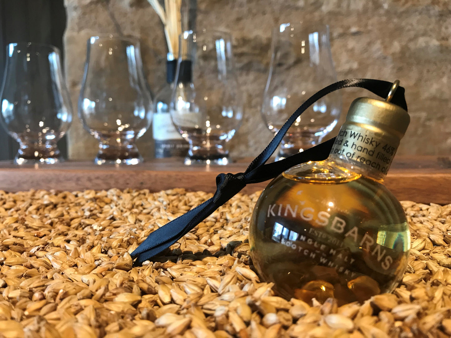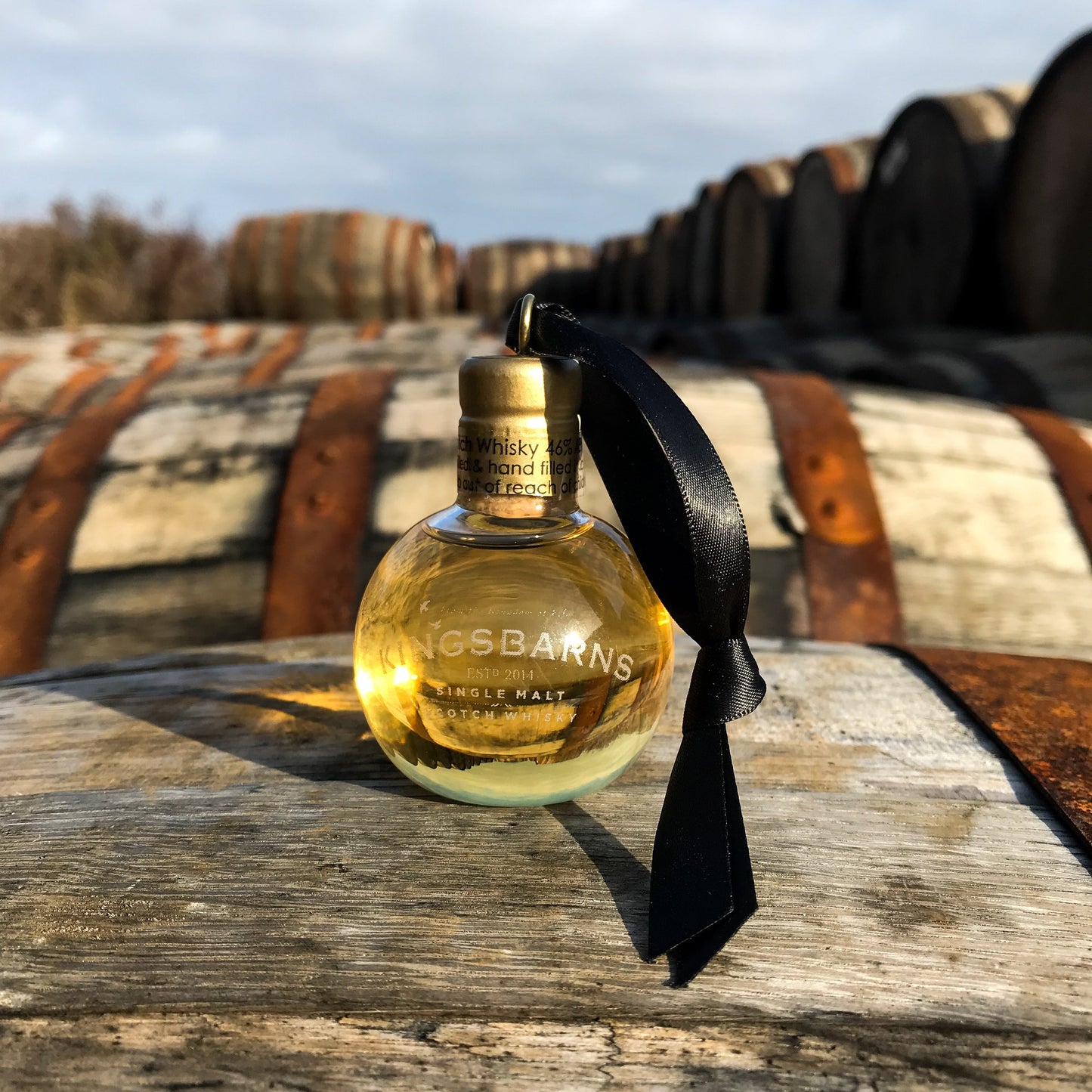 Whisky Bauble containing 50ml (at 46% abv.) of Kingsbarns Flagship Doocot single malt whisky.
